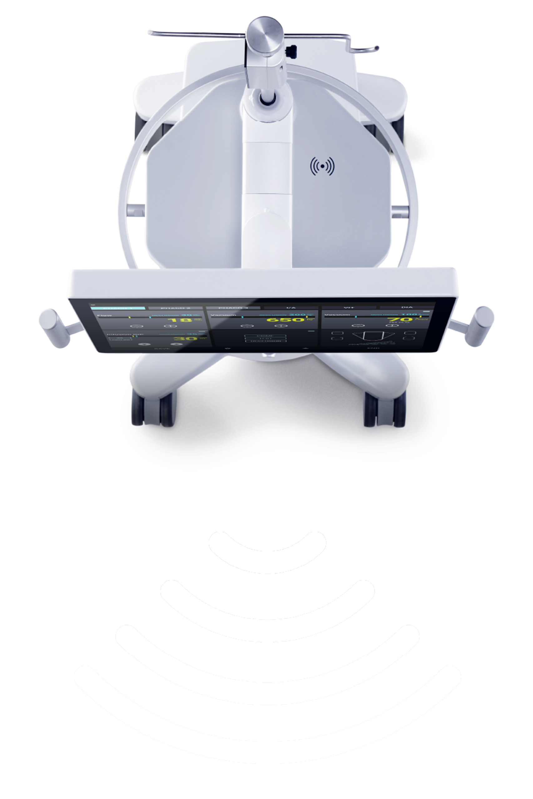A wireless connection of the foot pedal over Bluetooth is standard. Sophi can do much more! Sophi enables you to transmit live microscope images to the display over Wi-Fi.